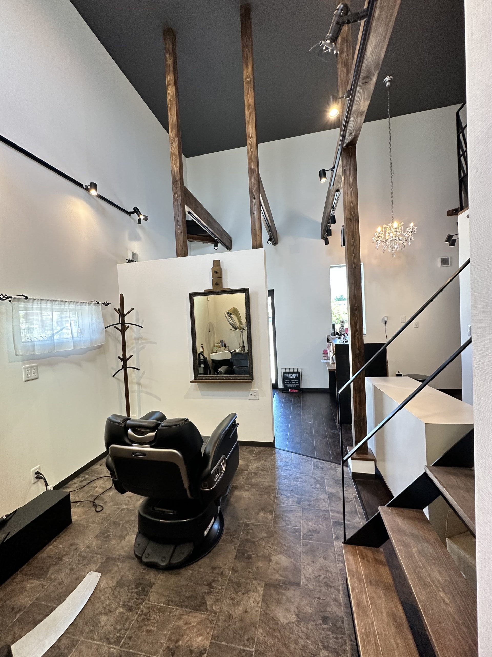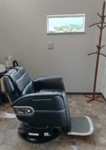 店舗はご覧のように、バリアフリーです。車椅子のまま駐車場所からバーバー&シャンプーチェアまで移動できます。